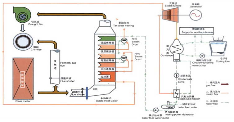 干熄焦技術是利用冷的惰性氣體(燃燒后的廢氣),在干熄爐中與赤熱紅焦換熱從而冷卻紅焦。吸收了紅焦熱量的惰性氣體將熱量傳給干熄焦鍋爐產生蒸汽,被冷卻的惰性氣體再由循環風機鼓入干熄爐冷卻紅焦。干熄焦鍋爐產生的蒸汽或并入廠內蒸汽管網或送去發電。二者在逆向運動中,焦炭逐漸被冷卻到250℃以下,然后由爐底的卸料裝置排出;同時,惰性氣體(或廢煙氣)被加熱到800℃左右,從干熄爐斜道口經過一次除塵器后進入干熄焦鍋爐;在鍋爐中,水被熱氣流加熱產生蒸汽,同時氣體被冷卻到200℃左右,再經二次除塵由循環風機重新送入干熄爐內循環使用。